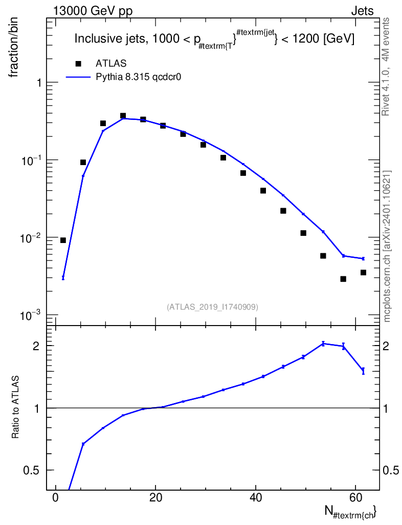 Lines: data, pythia8 8.315 qcdcr0 |