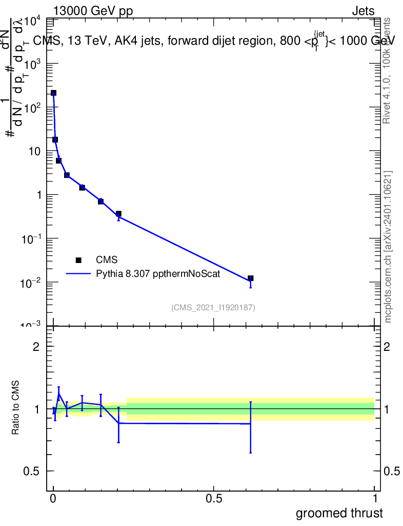 Lines: data, pythia8 8.307 ppthermNoScat |