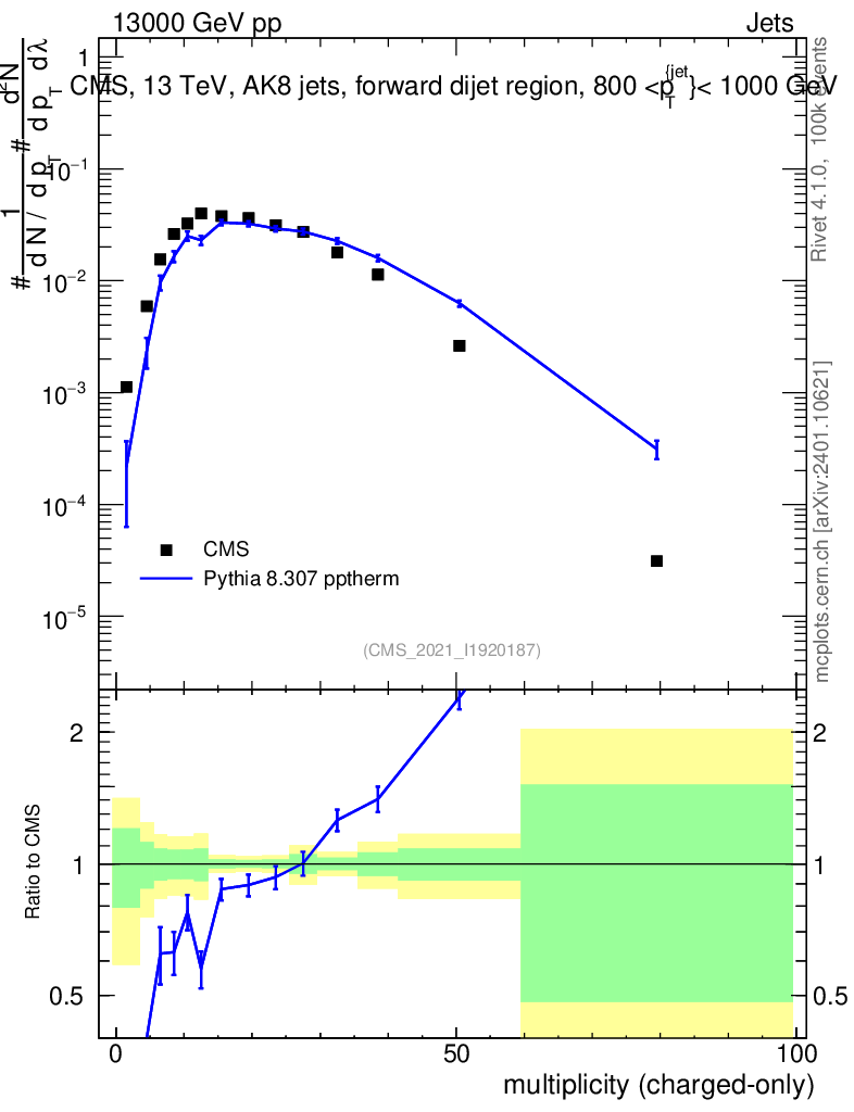 Lines: data, pythia8 8.307 pptherm |
