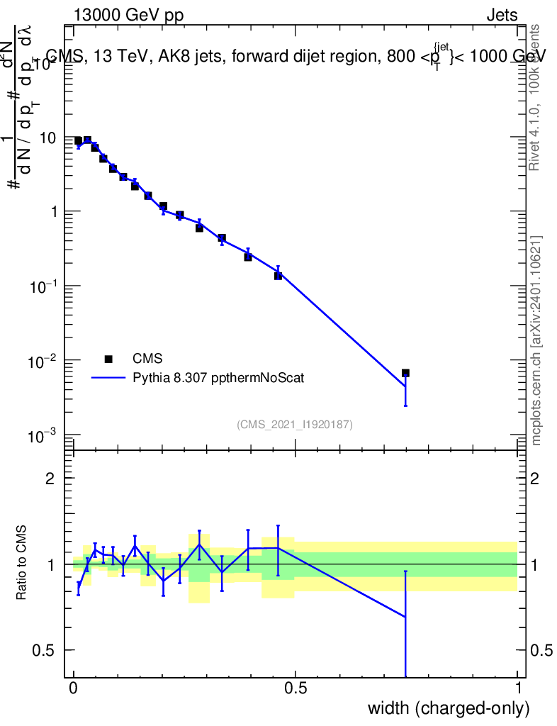 Lines: data, pythia8 8.307 ppthermNoScat |