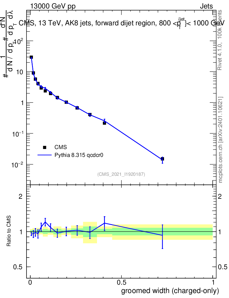 Lines: data, pythia8 8.315 qcdcr0 |