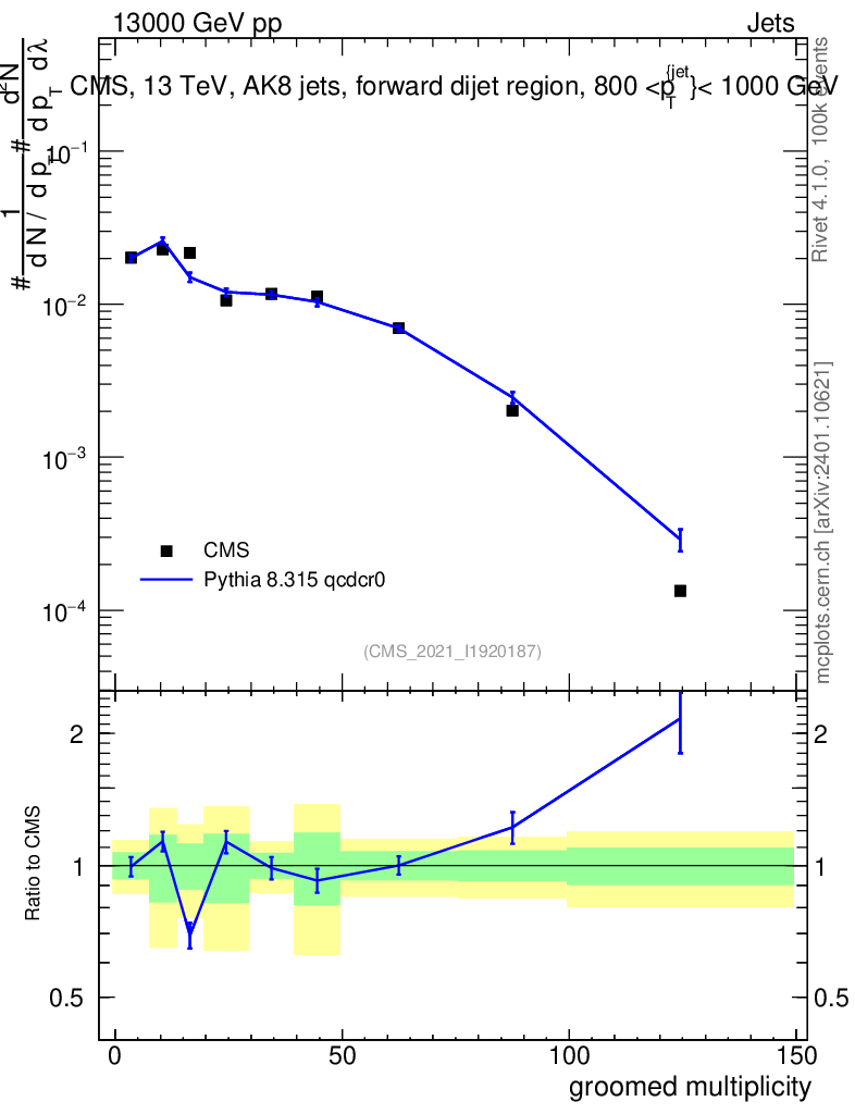 Lines: data, pythia8 8.315 qcdcr0 |