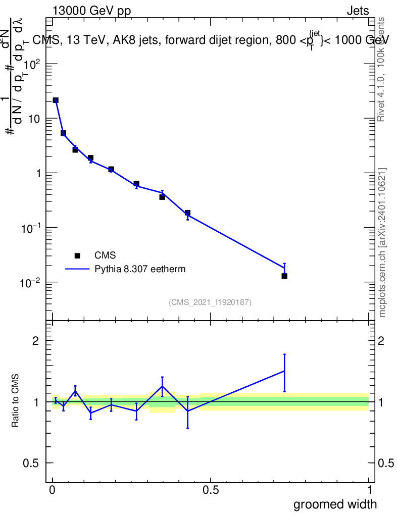 Lines: data, pythia8 8.307 eetherm |