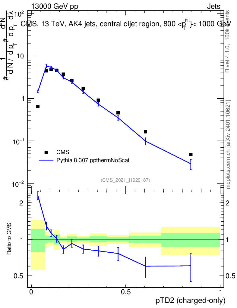Lines: data, pythia8 8.307 ppthermNoScat |