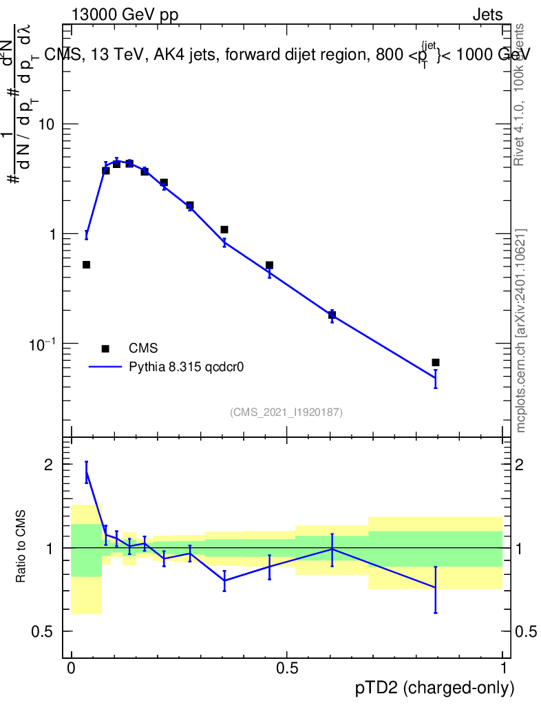 Lines: data, pythia8 8.315 qcdcr0 |