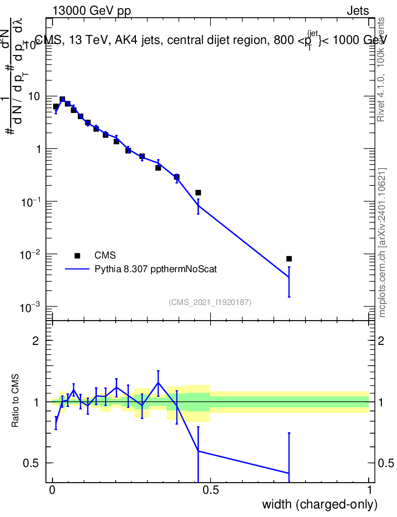 Lines: data, pythia8 8.307 ppthermNoScat |