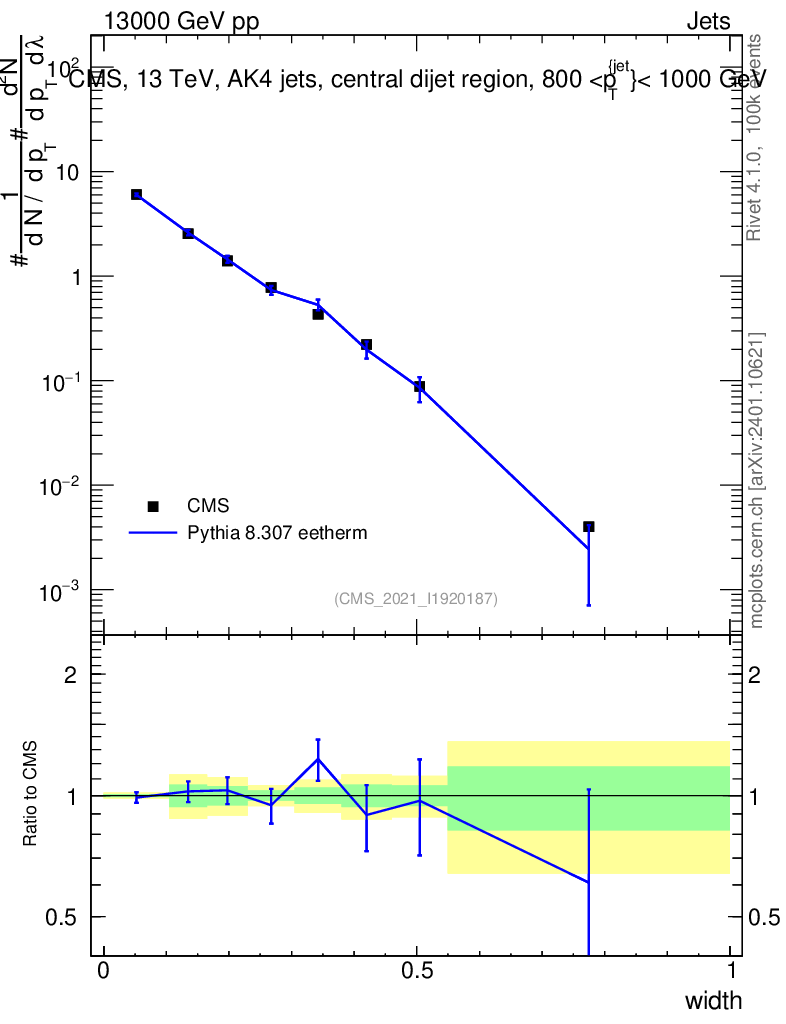 Lines: data, pythia8 8.307 eetherm |