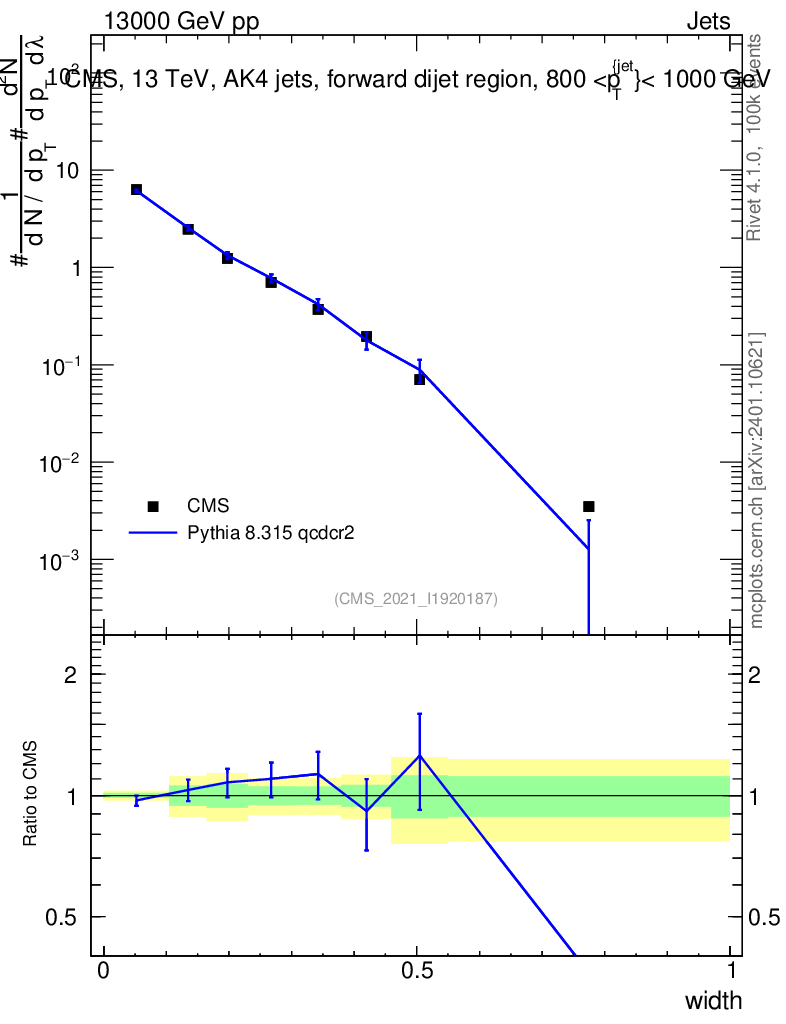 Lines: data, pythia8 8.315 qcdcr2 |