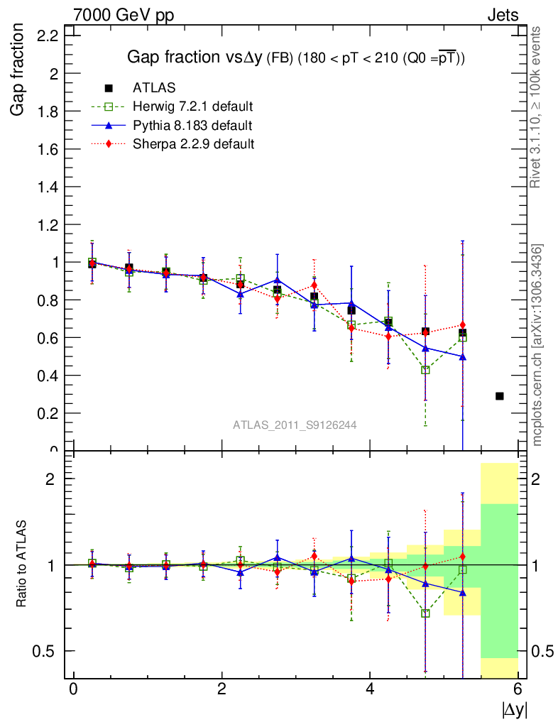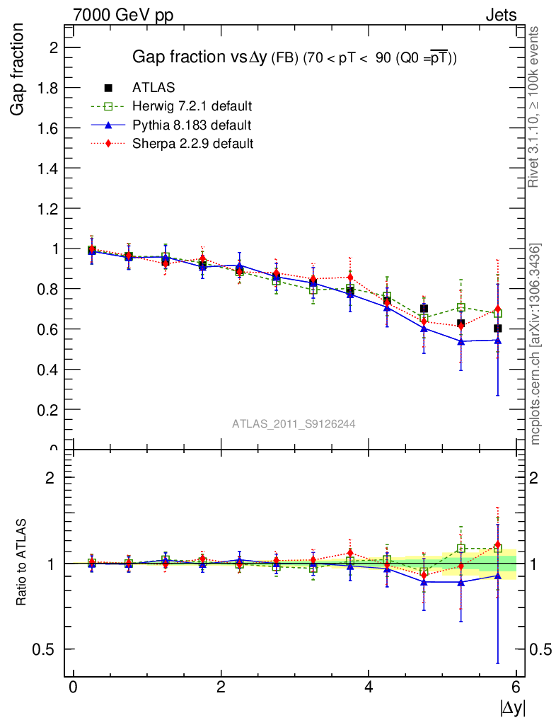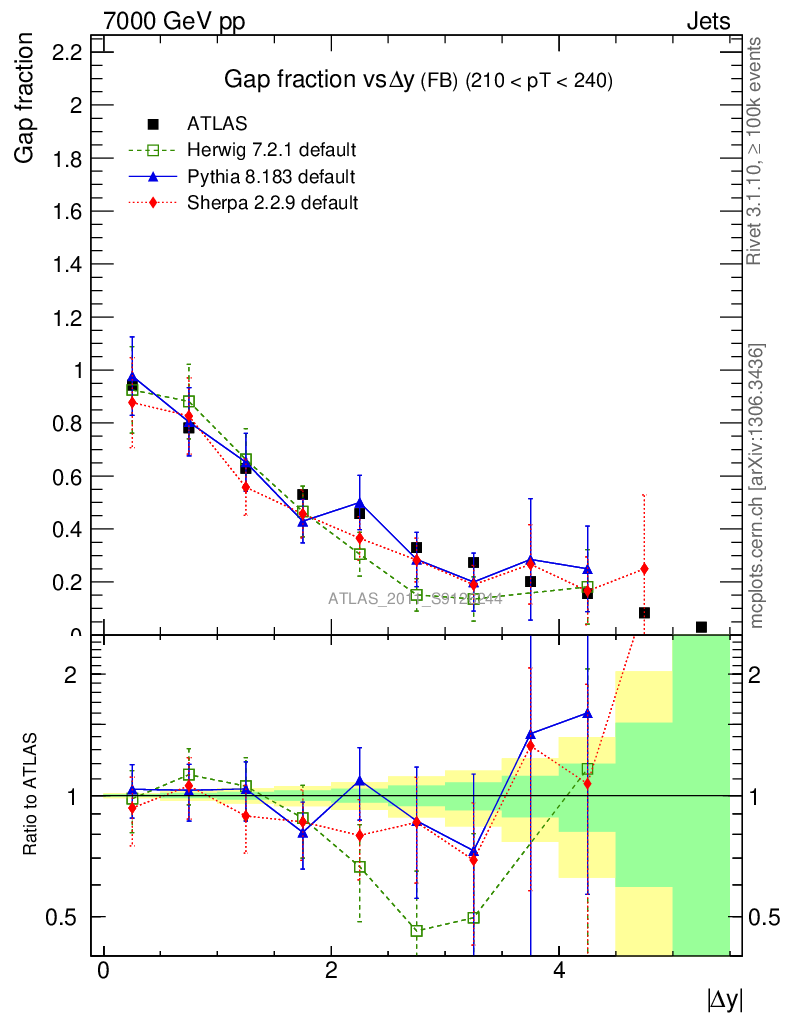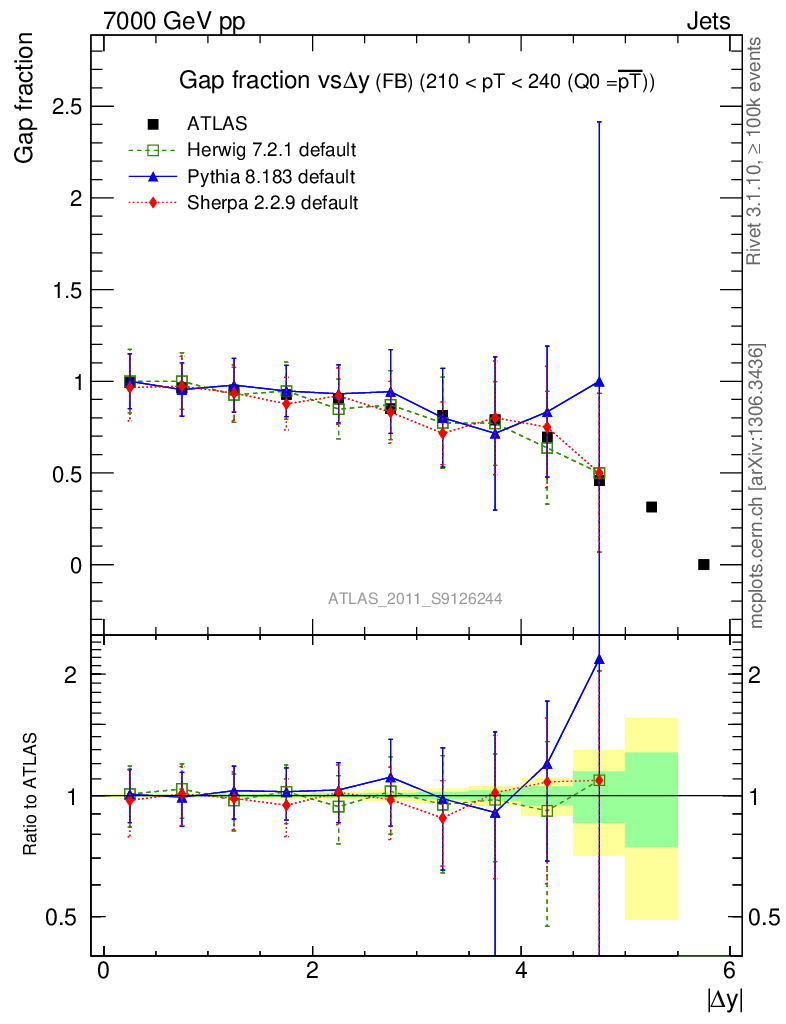 Jets : Jets + Veto : Gap fraction vs Δy (FB)