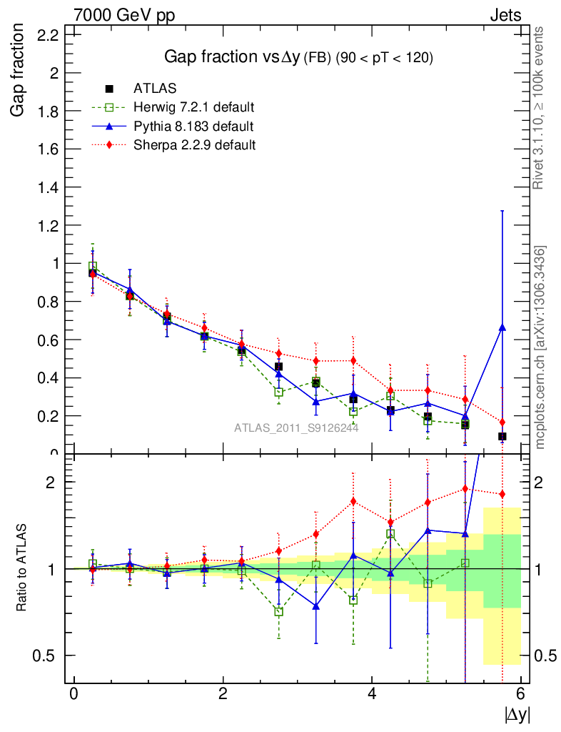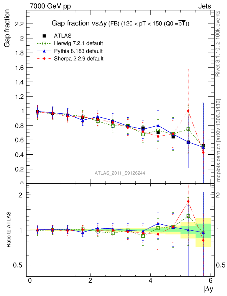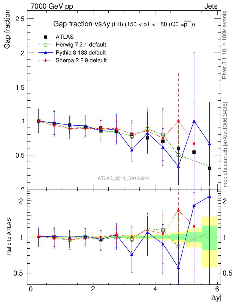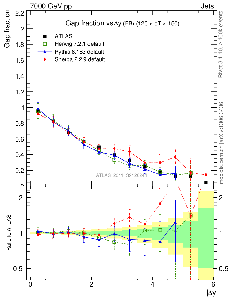 Jets : Jets + Veto : Gap fraction vs Δy (FB)