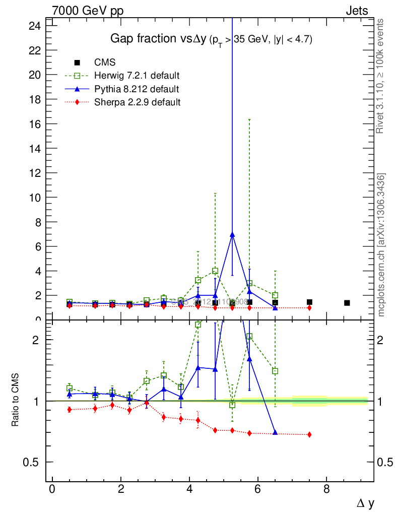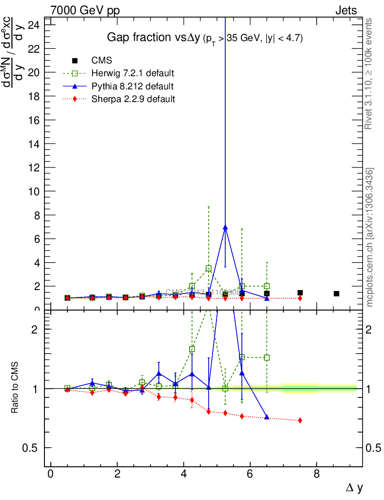 Jets : Jets + Veto : Gap fraction vs Δy