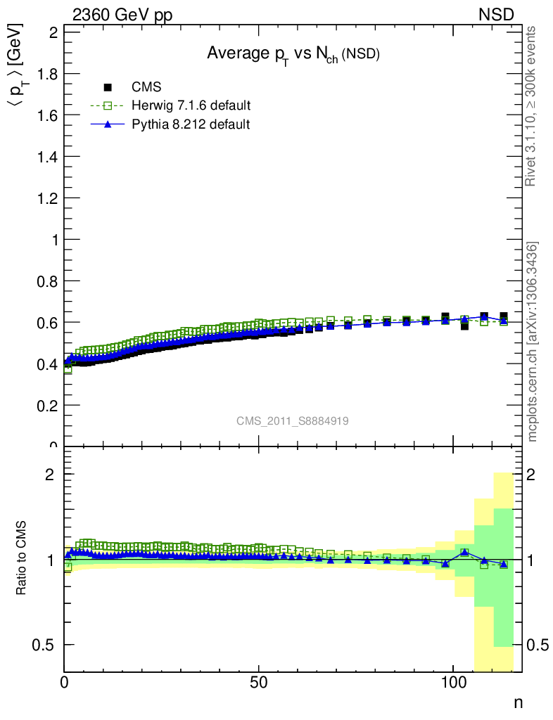 Soft QCD (nsd only) : <pT> vs Nch