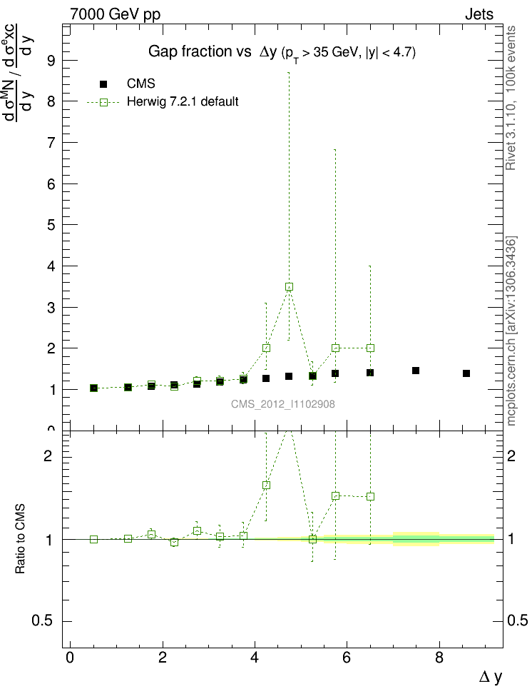 Jets : Jets + Veto : Gap fraction vs Δy