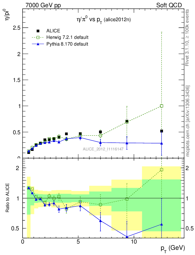 Soft QCD (inelastic) : Identified Particles : Ratios : η/π0 vs pT