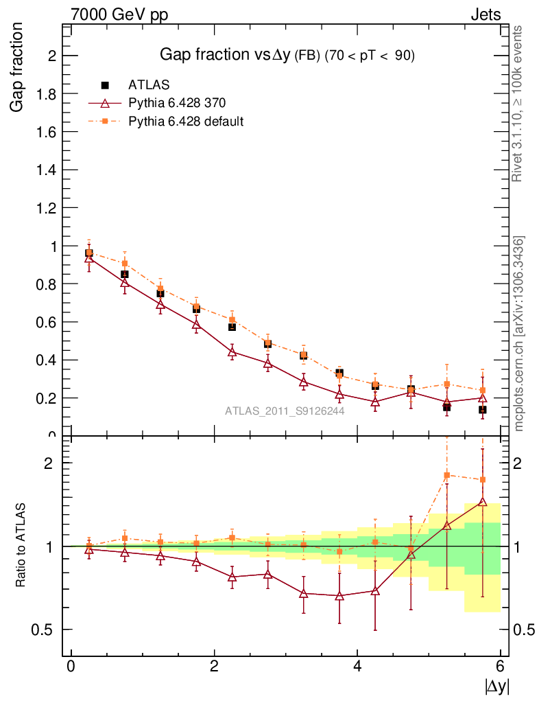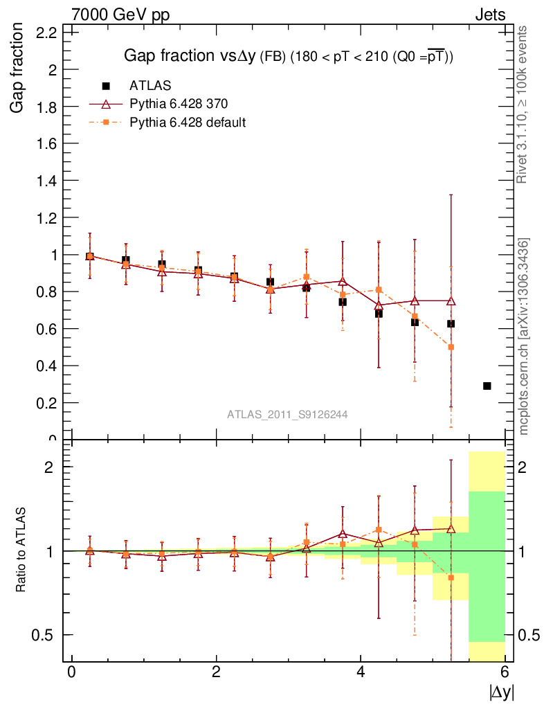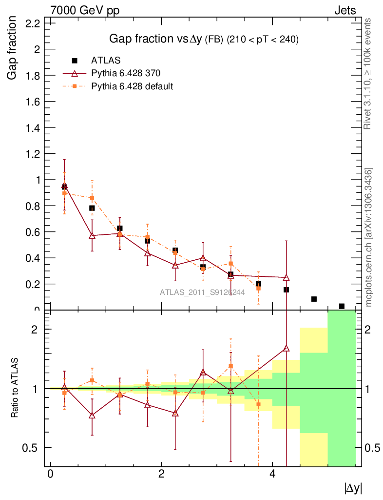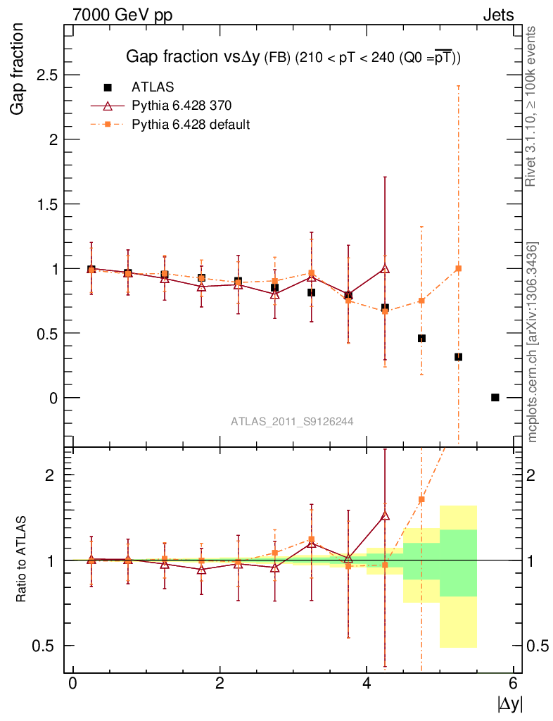 Jets : Jets + Veto : Gap fraction vs Δy (FB)