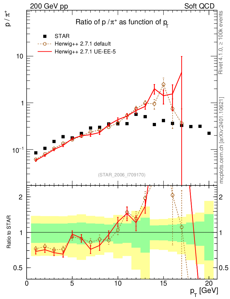 Soft QCD (inelastic) : Identified Particles : Ratios : p/π+ vs pT
