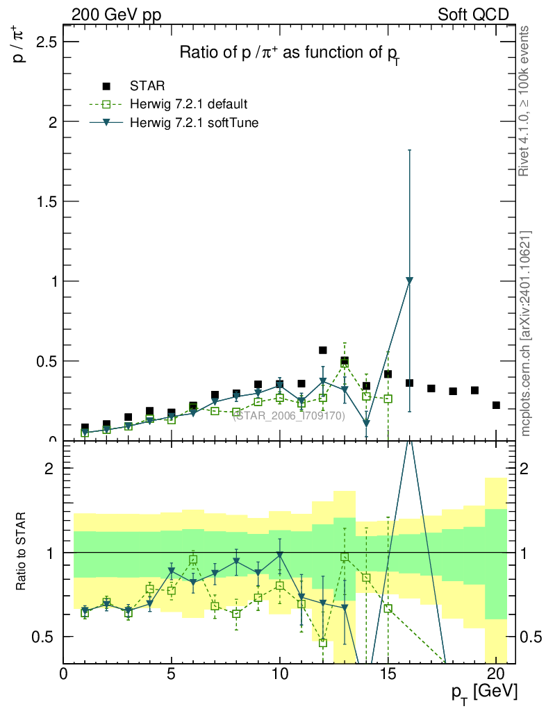 Soft QCD (inelastic) : Identified Particles : Ratios : p/π+ vs pT