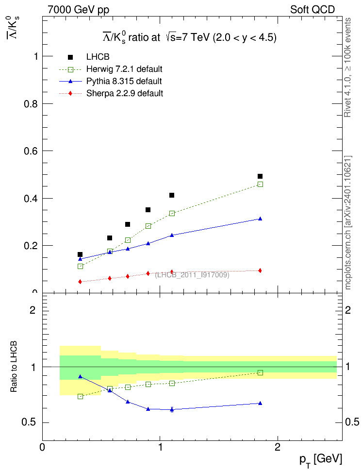 Soft QCD (inelastic) : Identified Particles : Ratios : Λbar/K0S vs pT