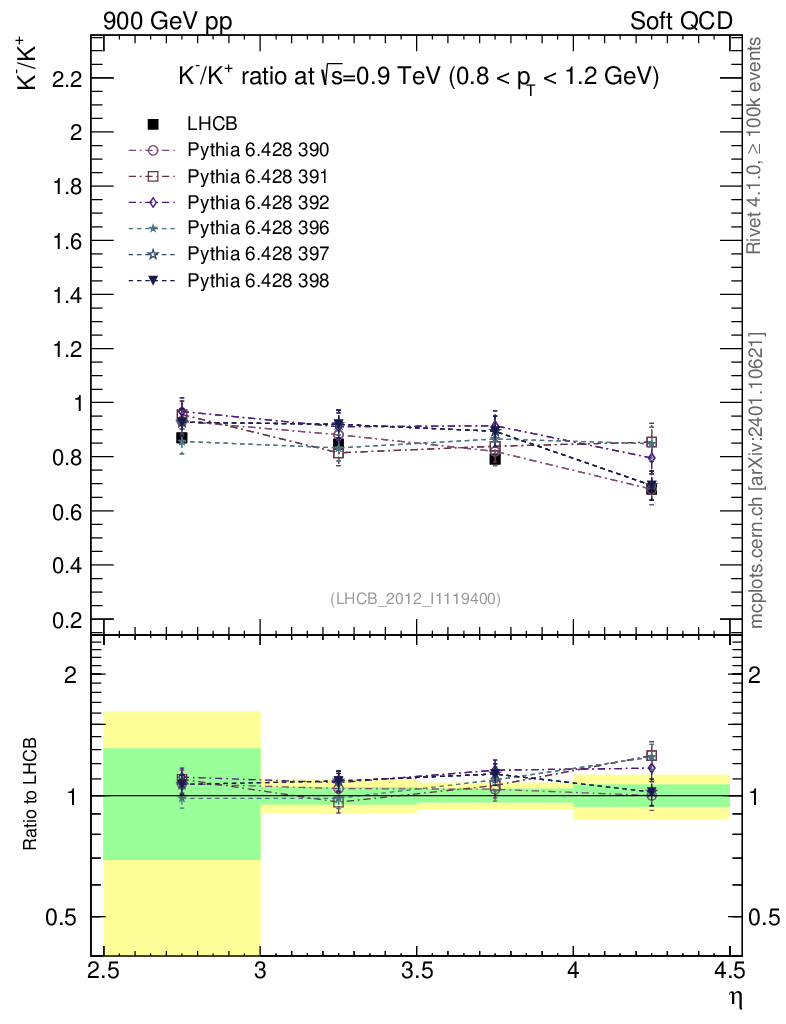 Soft QCD (inelastic) : Identified Particles : Ratios : K-/K+ vs |y|