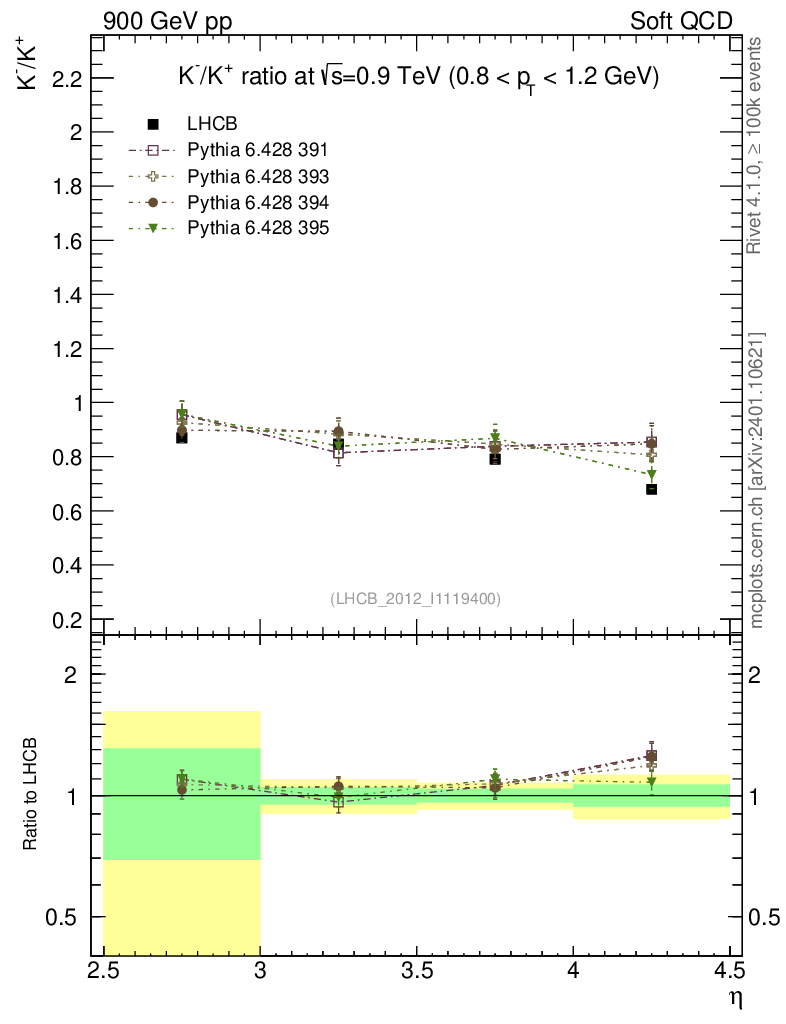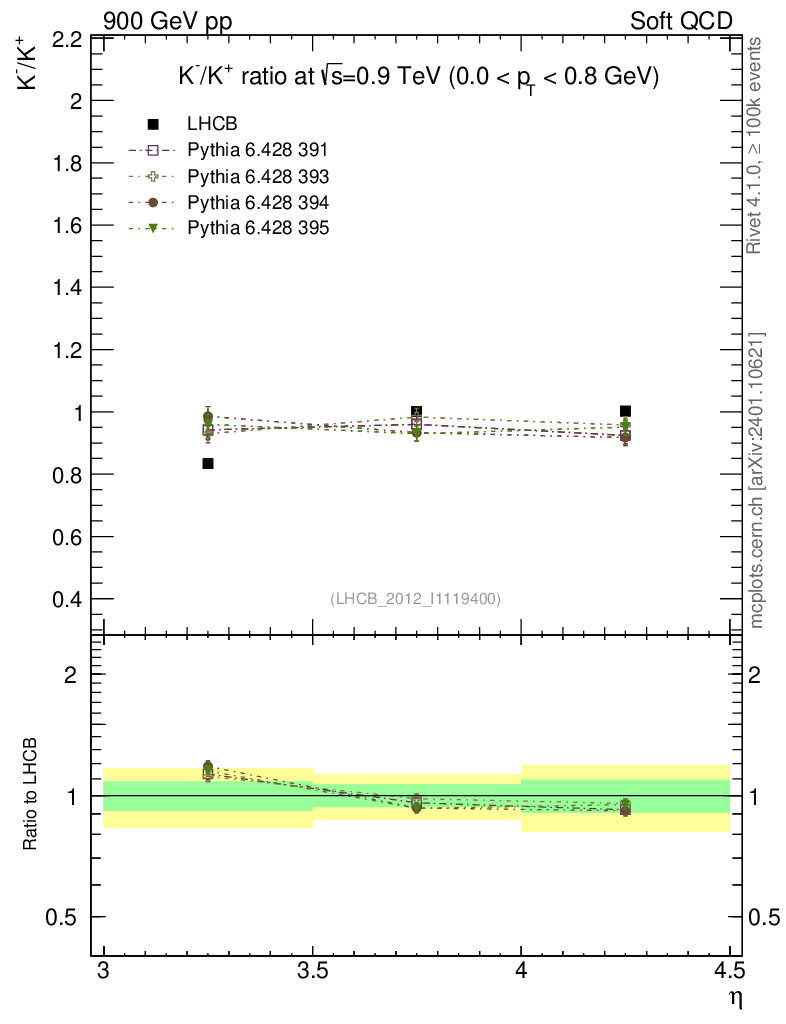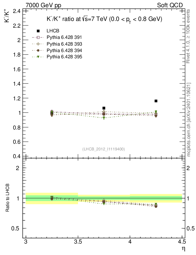 Soft QCD (inelastic) : Identified Particles : Ratios : K-/K+ vs |y|