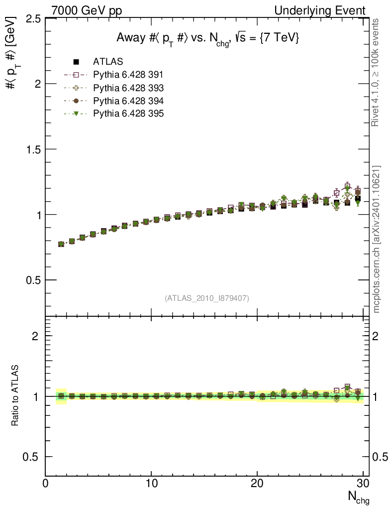 Underlying Event : Away : <pT> vs Nch