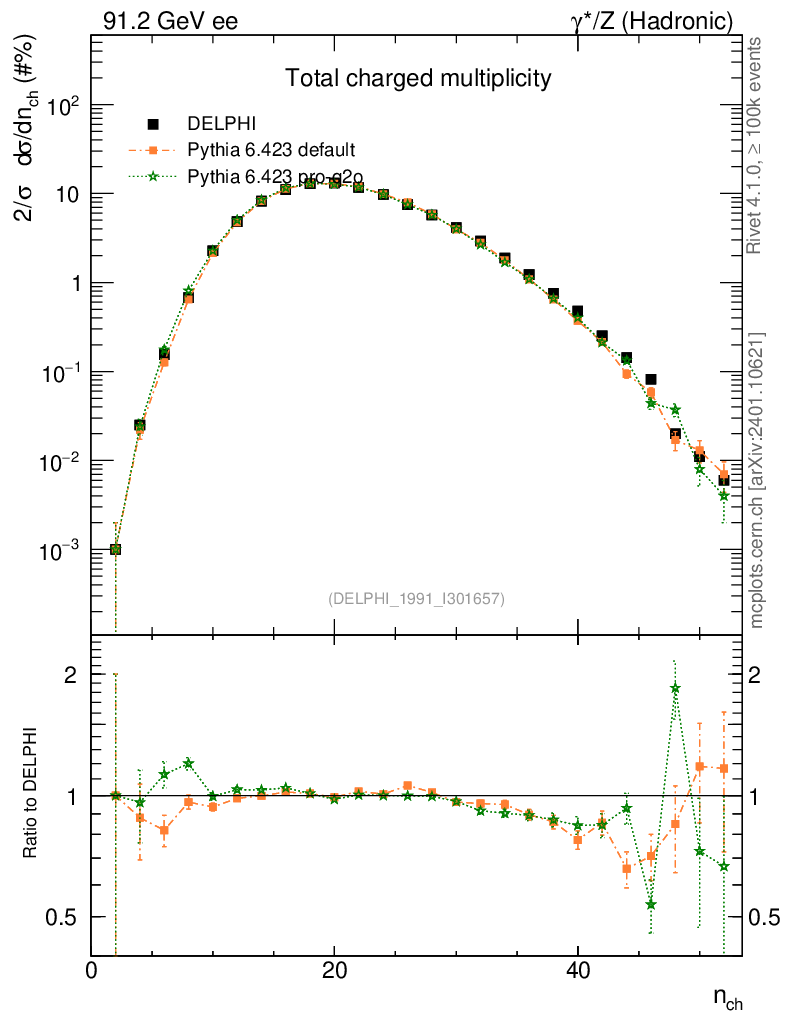 ee : γ*/Z (hadronic) : Charged Particles : Multiplicity Distribution