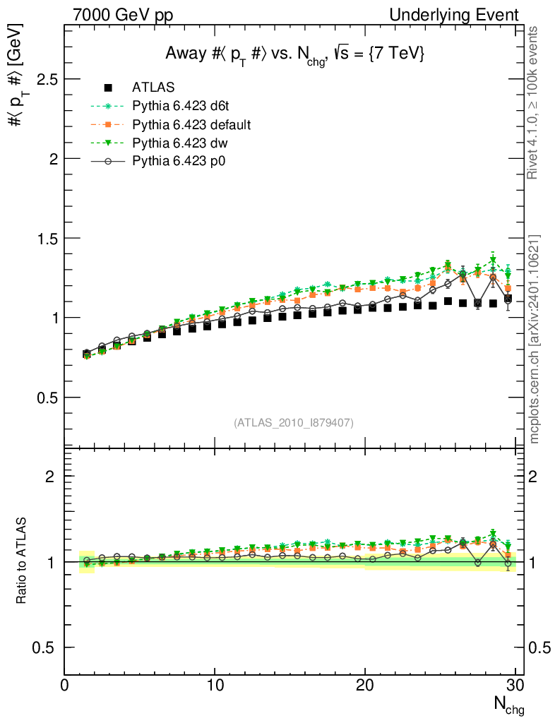Underlying Event : Away : <pT> vs Nch