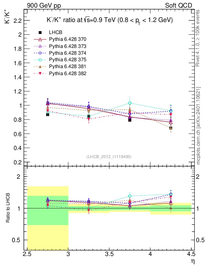 Soft QCD (inelastic) : Identified Particles : Ratios : K-/K+ vs |y|