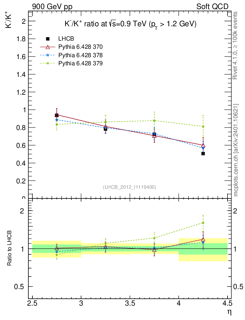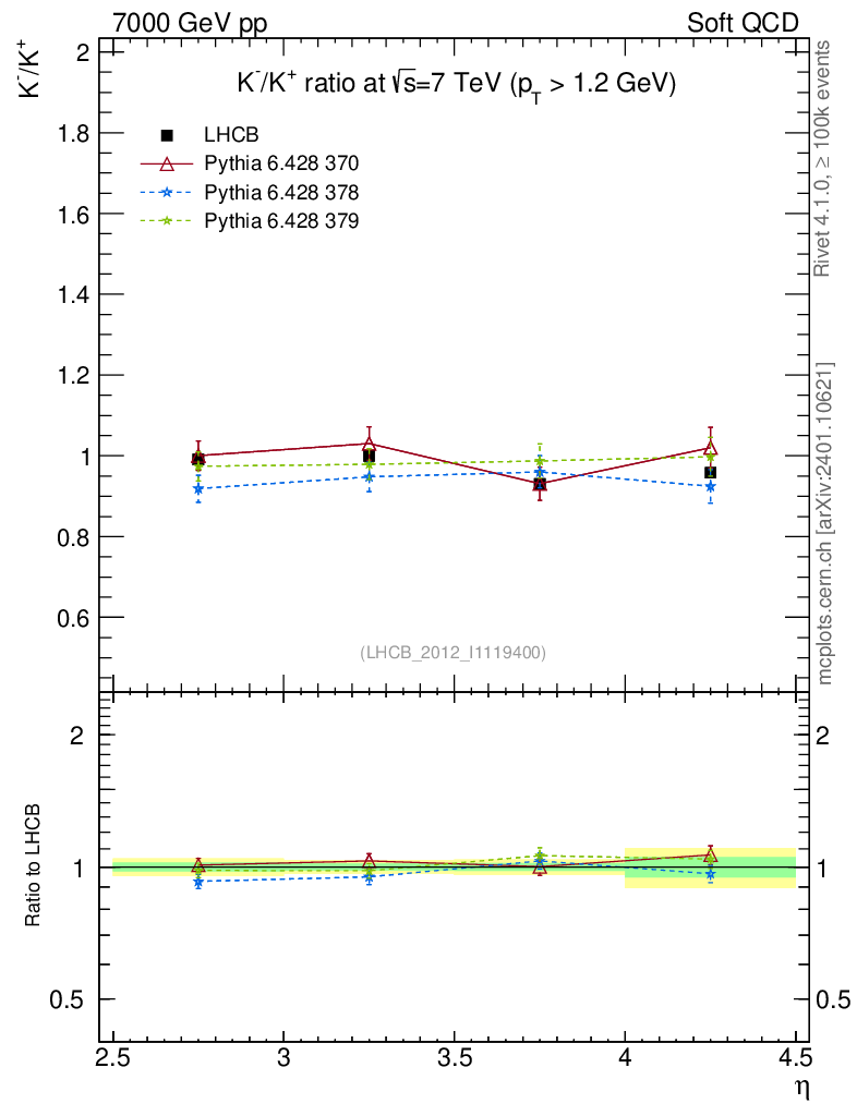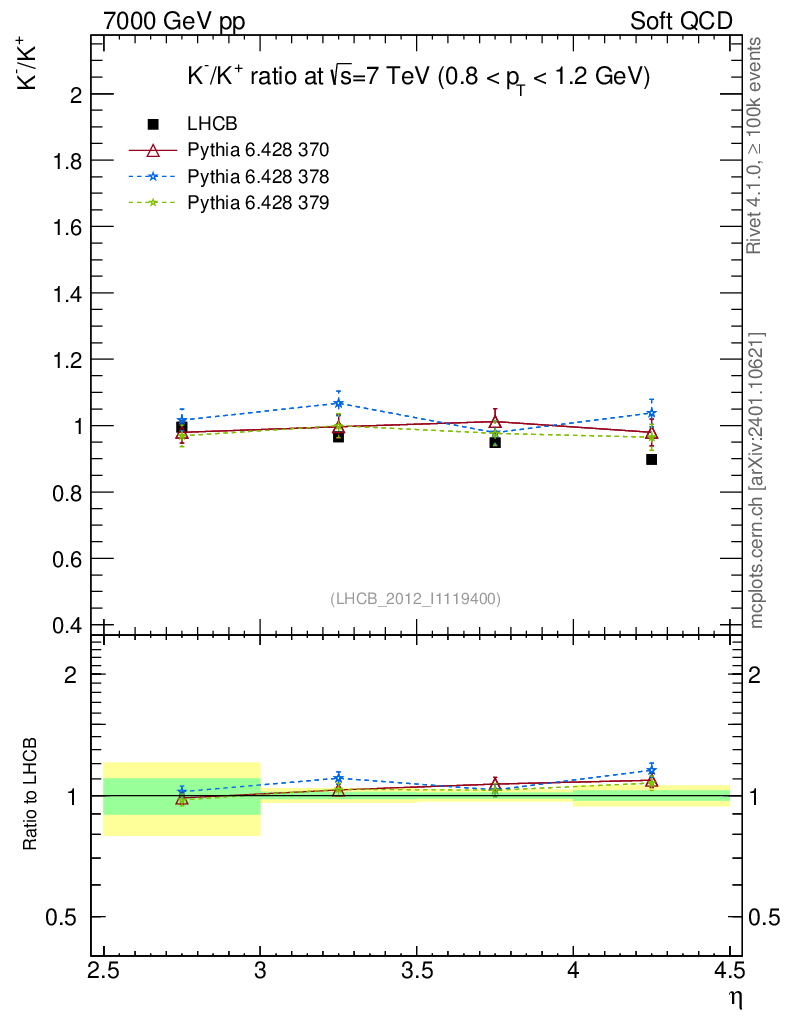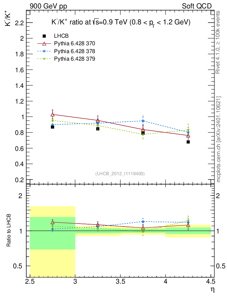 Soft QCD (inelastic) : Identified Particles : Ratios : K-/K+ vs |y|