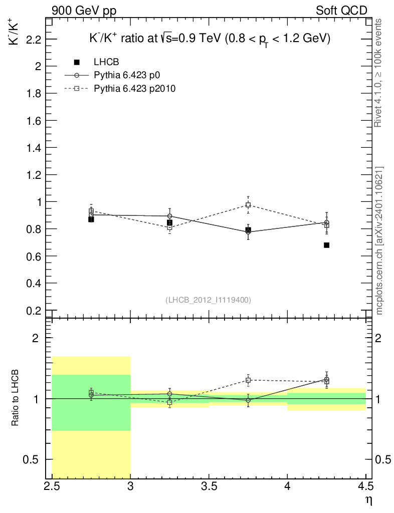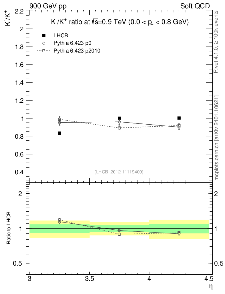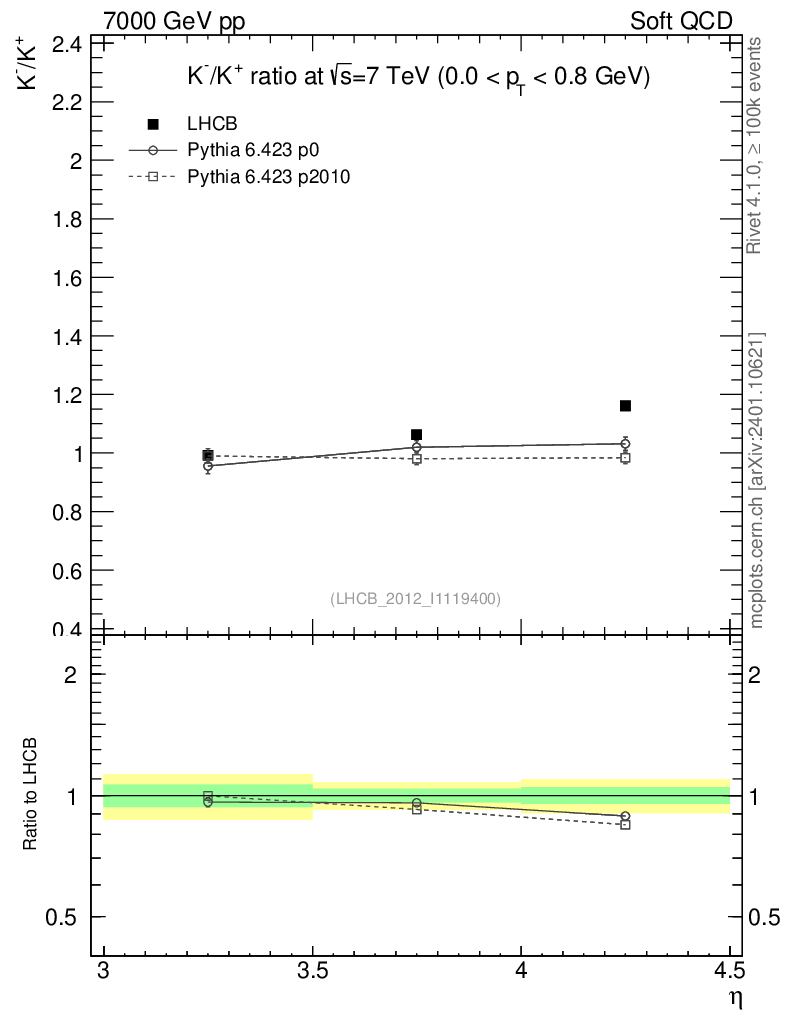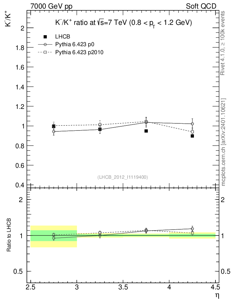 Soft QCD (inelastic) : Identified Particles : Ratios : K-/K+ vs |y|