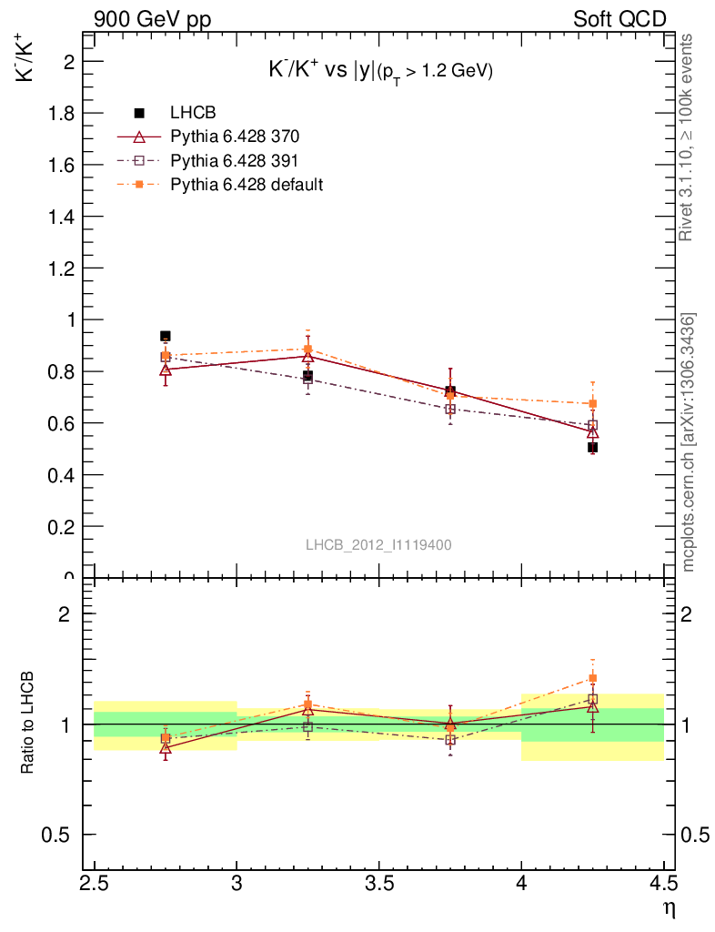 Soft QCD (inelastic) : Identified Particles : Ratios : K-/K+ vs |y|