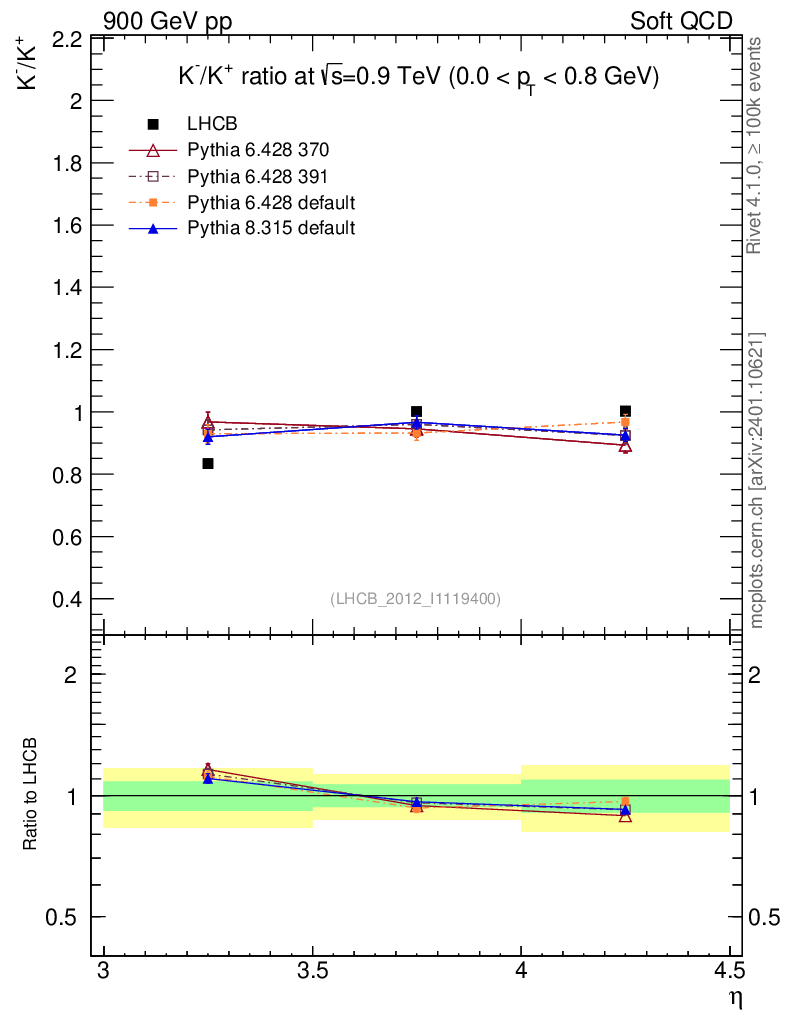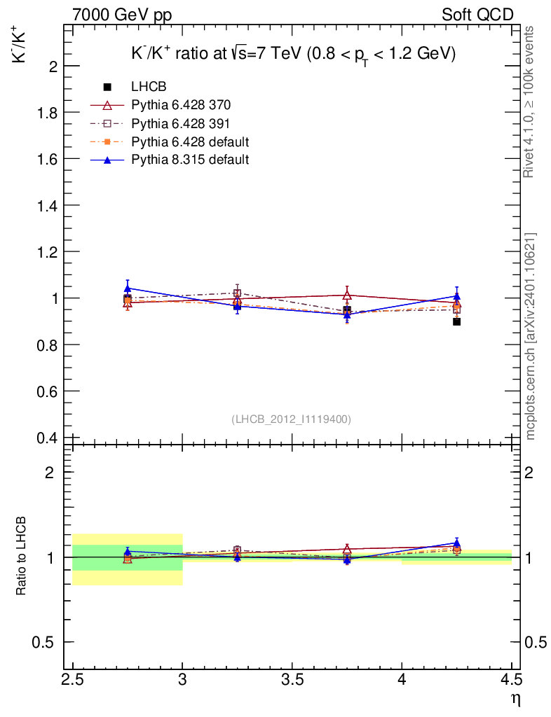 Soft QCD (inelastic) : Identified Particles : Ratios : K-/K+ vs |y|