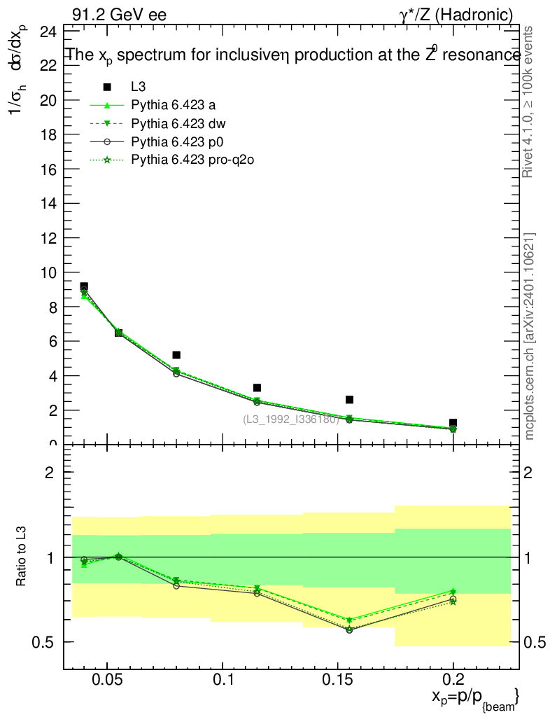 ee : γ*/Z (hadronic) : Identified Particles : η spectrum