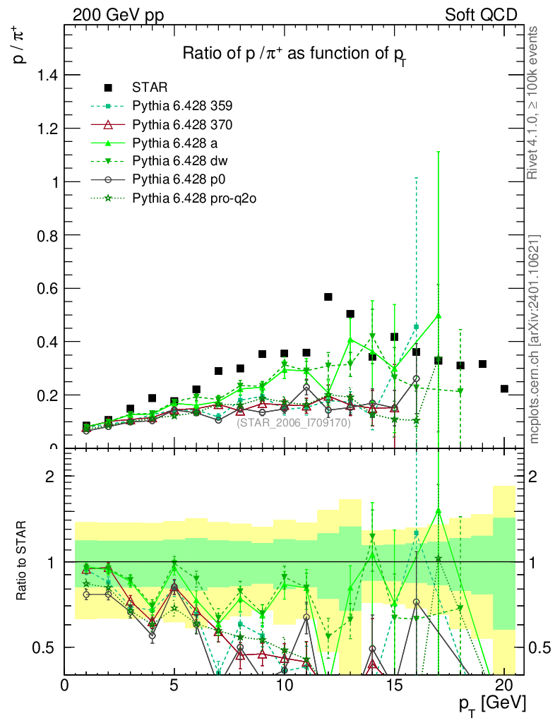 Soft QCD (inelastic) : Identified Particles : Ratios : p/π+ vs pT