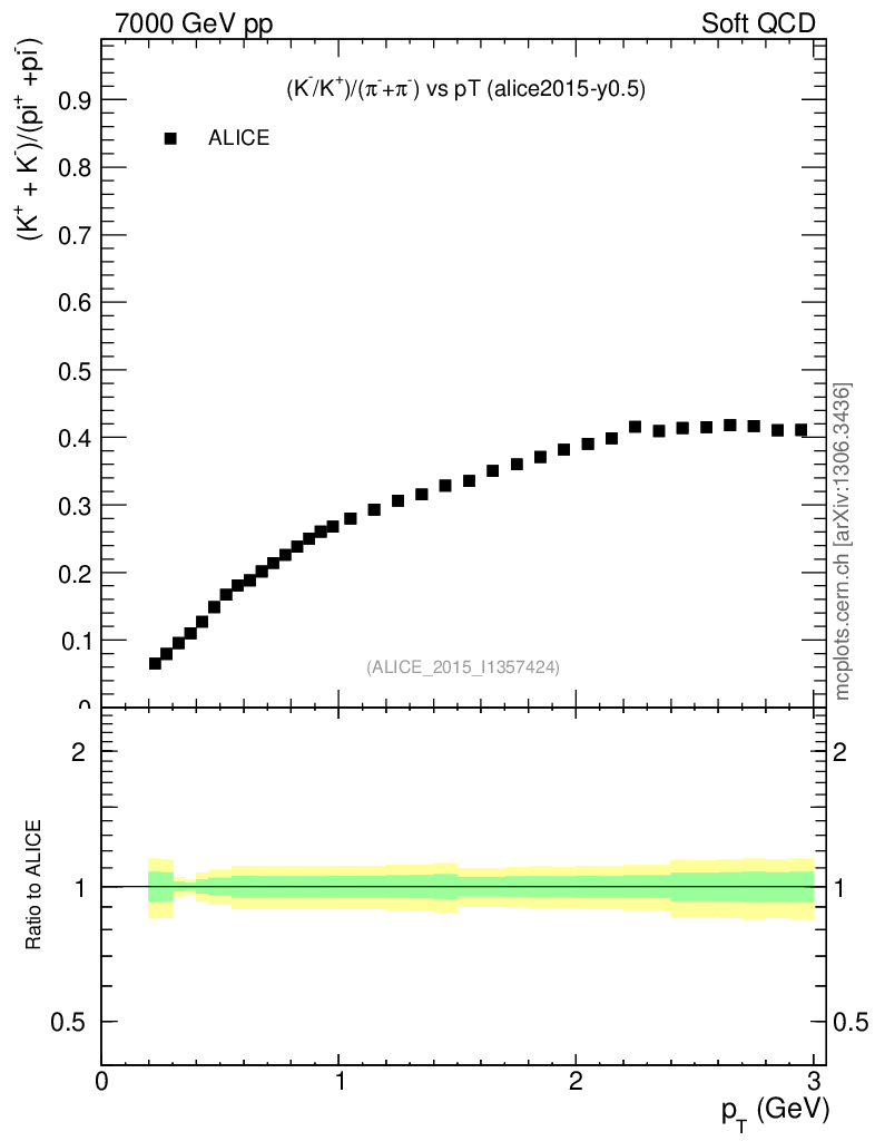Soft QCD (inelastic) : Identified Particles : Ratios : (K-+K+)/(π-+π+) vs pT