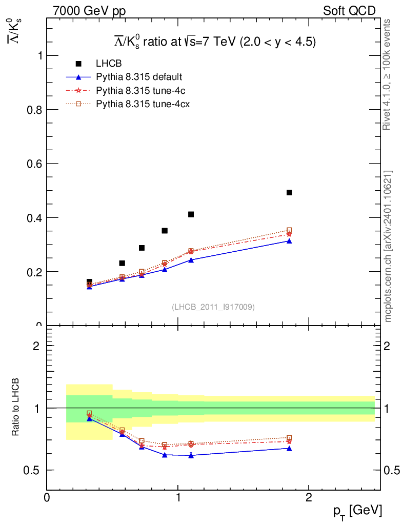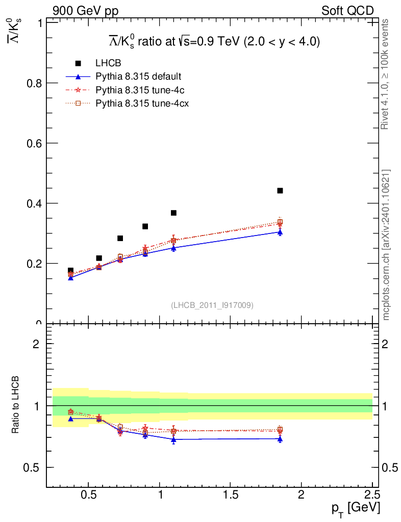 Soft QCD (inelastic) : Identified Particles : Ratios : Λbar/K0S vs pT