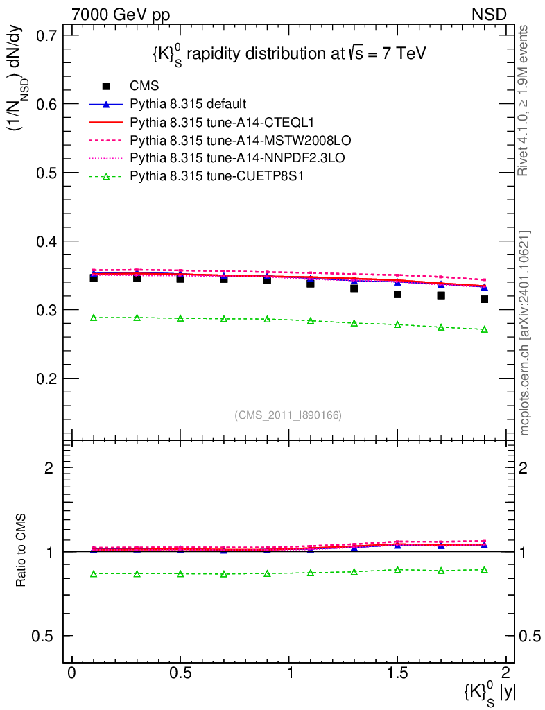 Soft QCD (nsd only) : Identified Particles : Y : K0S