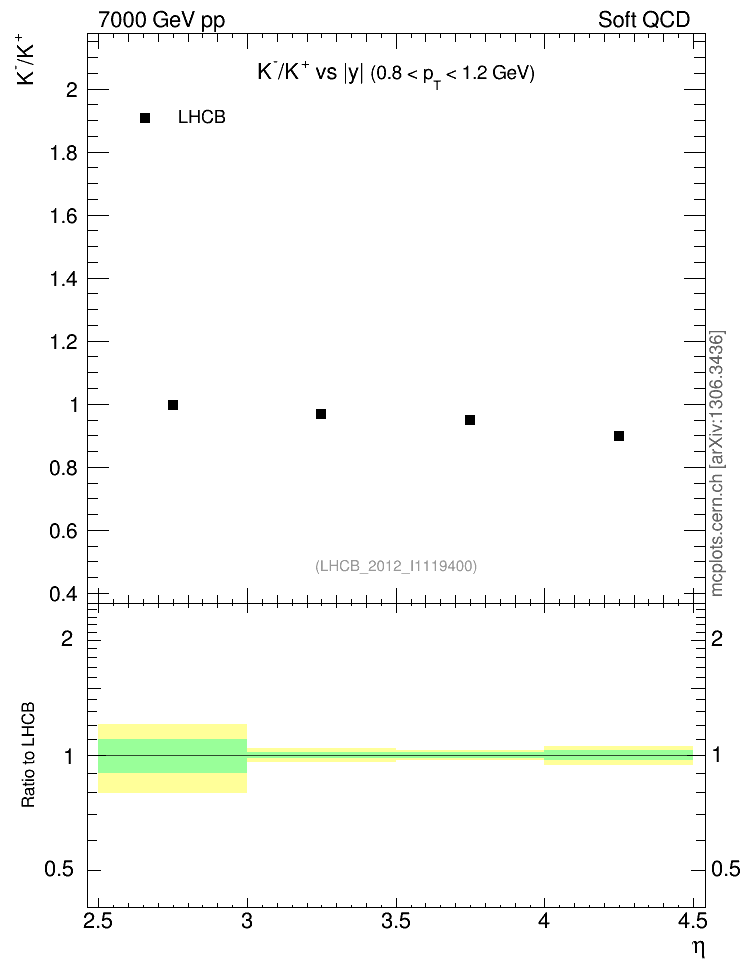 Soft QCD (inelastic) : Identified Particles : Ratios : K-/K+ vs |y|
