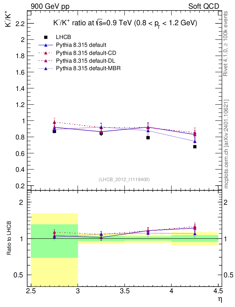 Soft QCD (inelastic) : Identified Particles : Ratios : K-/K+ vs |y|