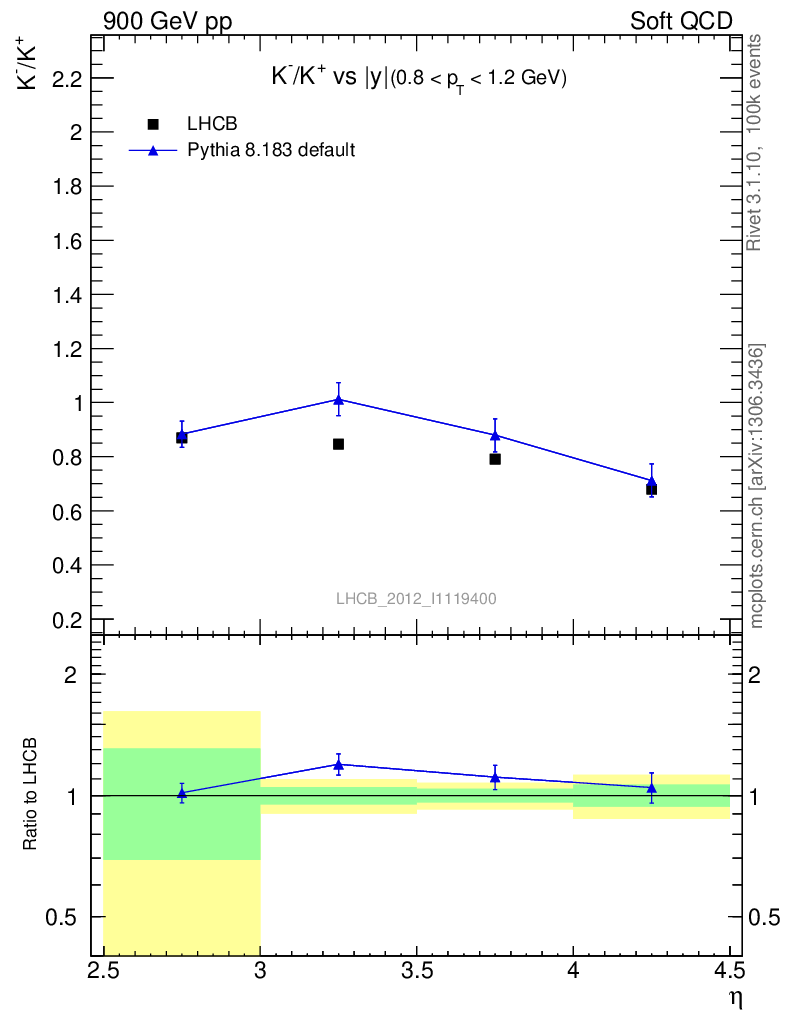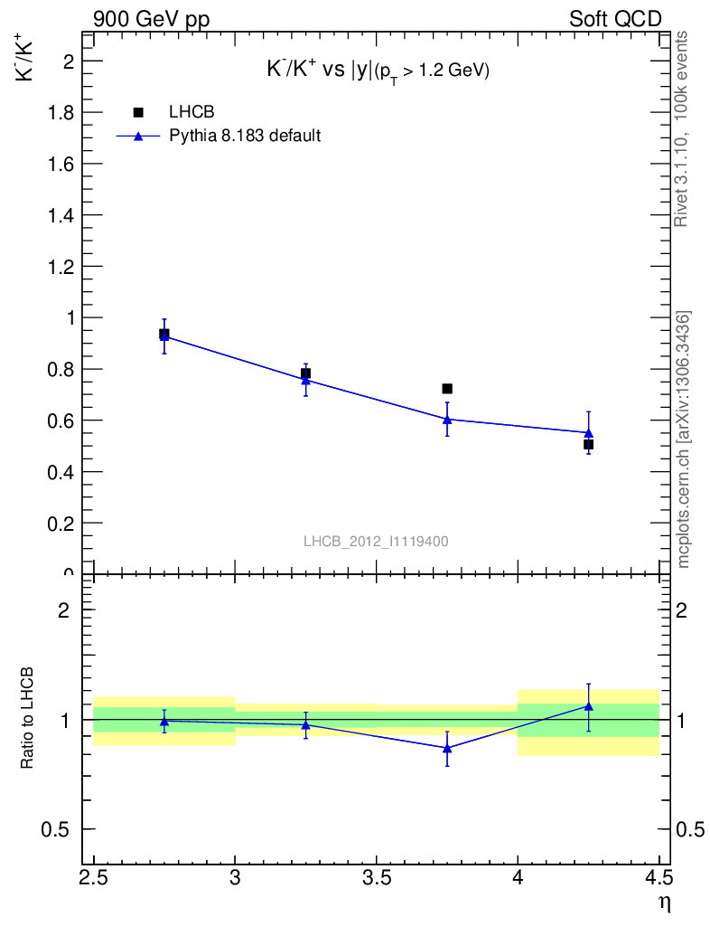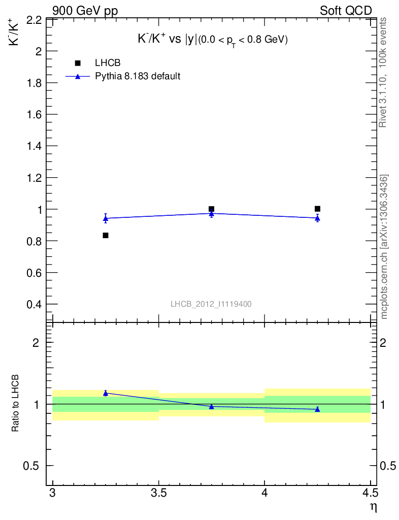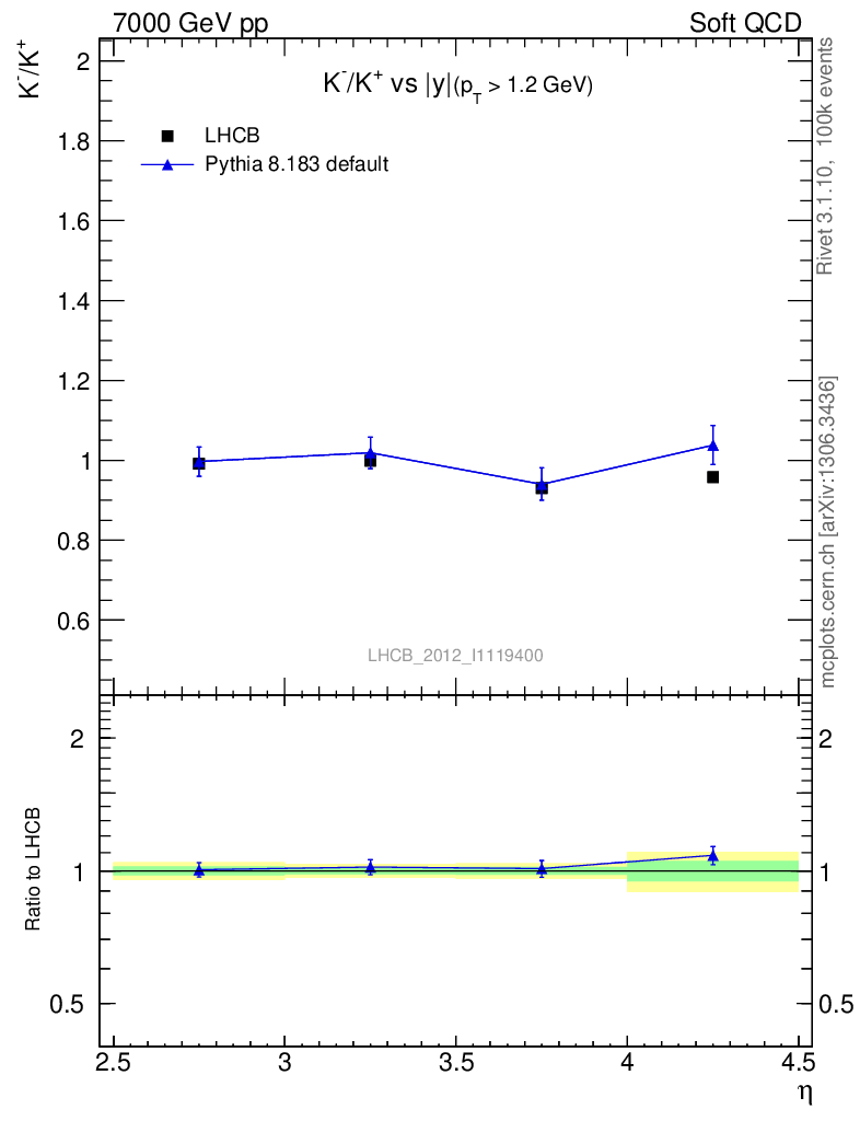 Soft QCD (inelastic) : Identified Particles : Ratios : K-/K+ vs |y|