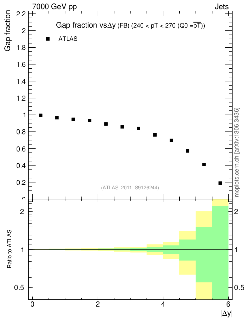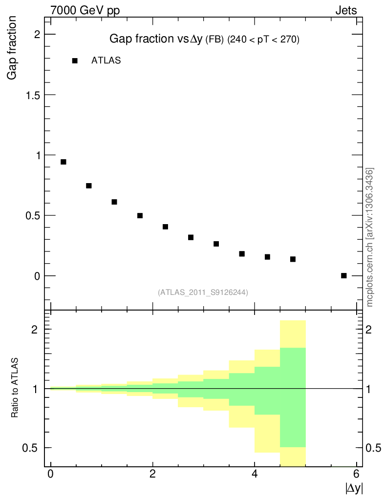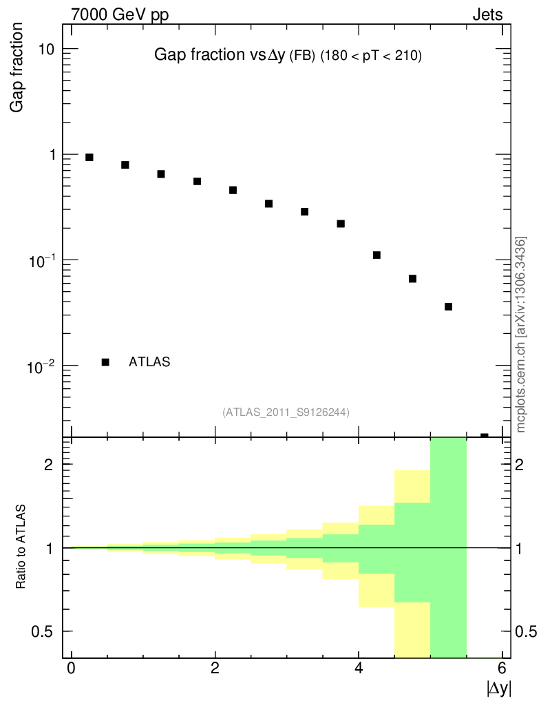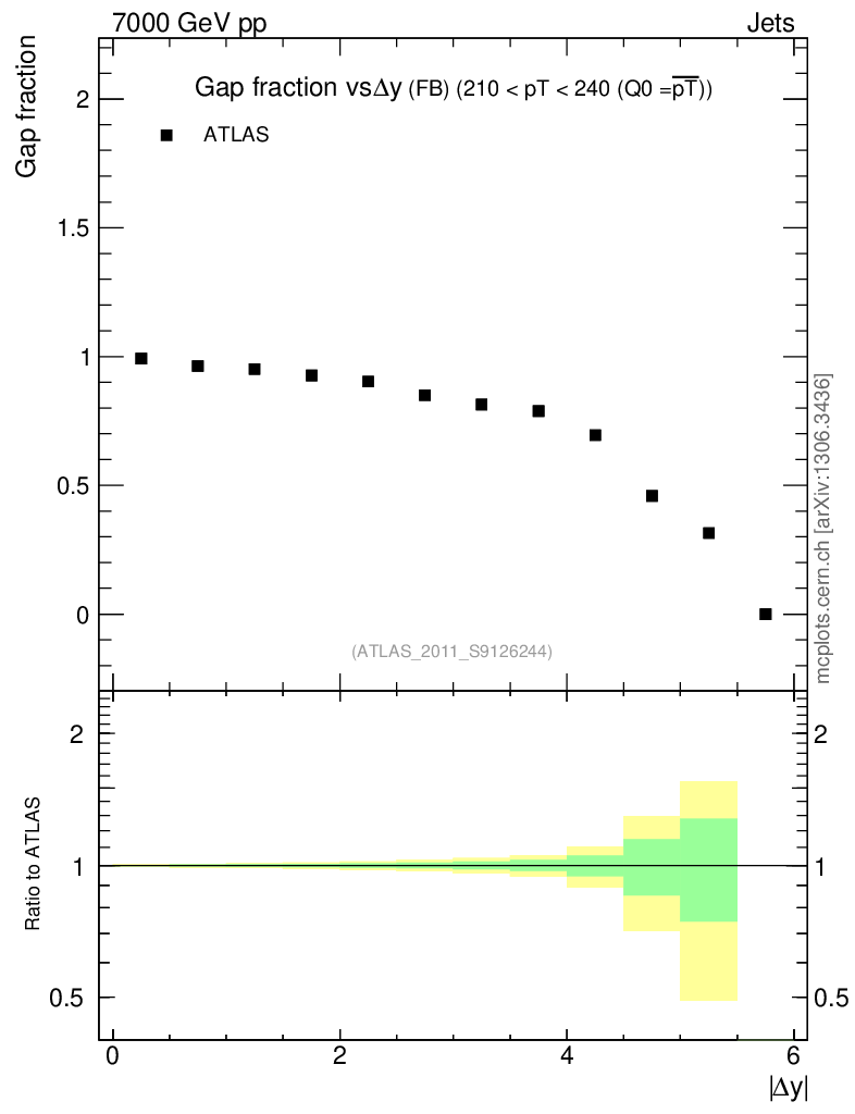 Jets : Jets + Veto : Gap fraction vs Δy (FB)