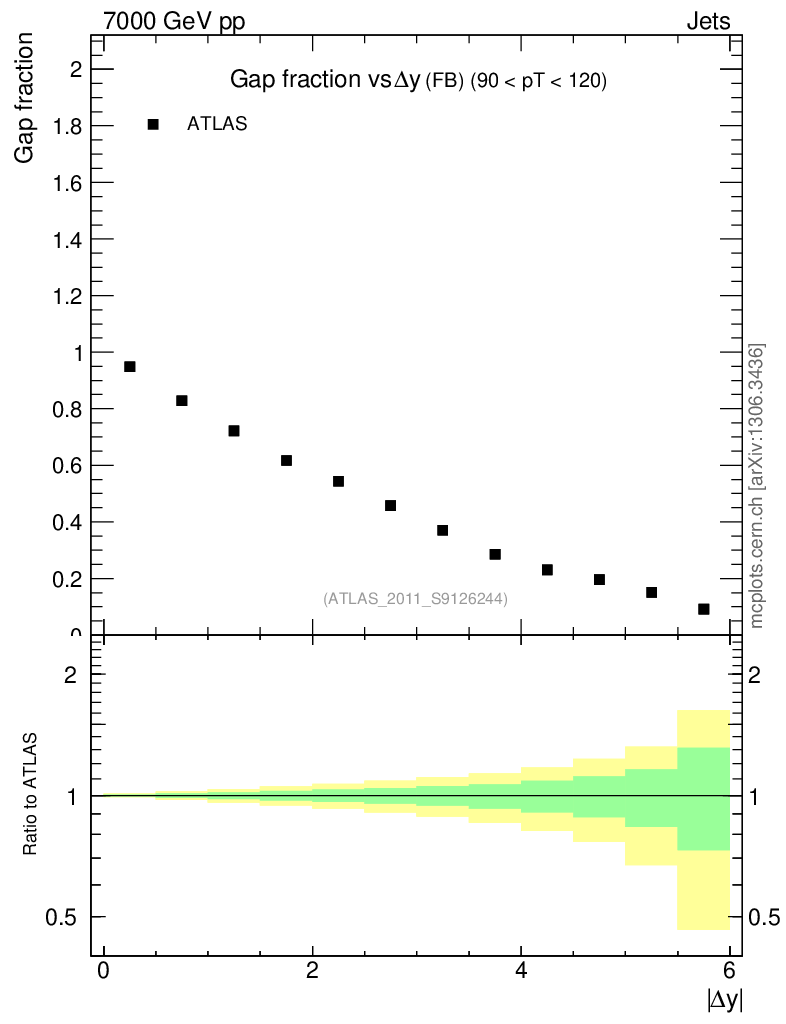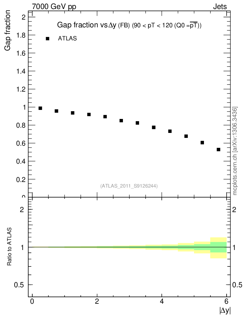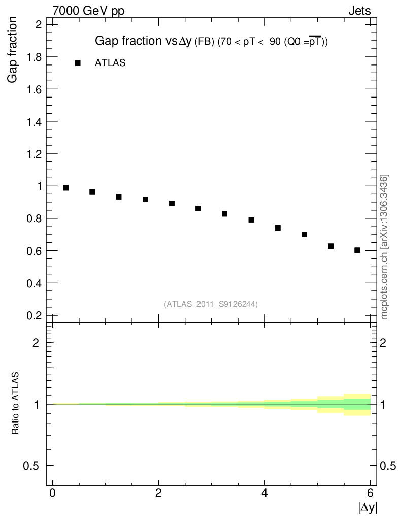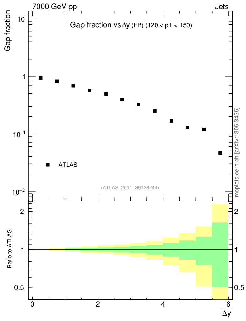 Jets : Jets + Veto : Gap fraction vs Δy (FB)