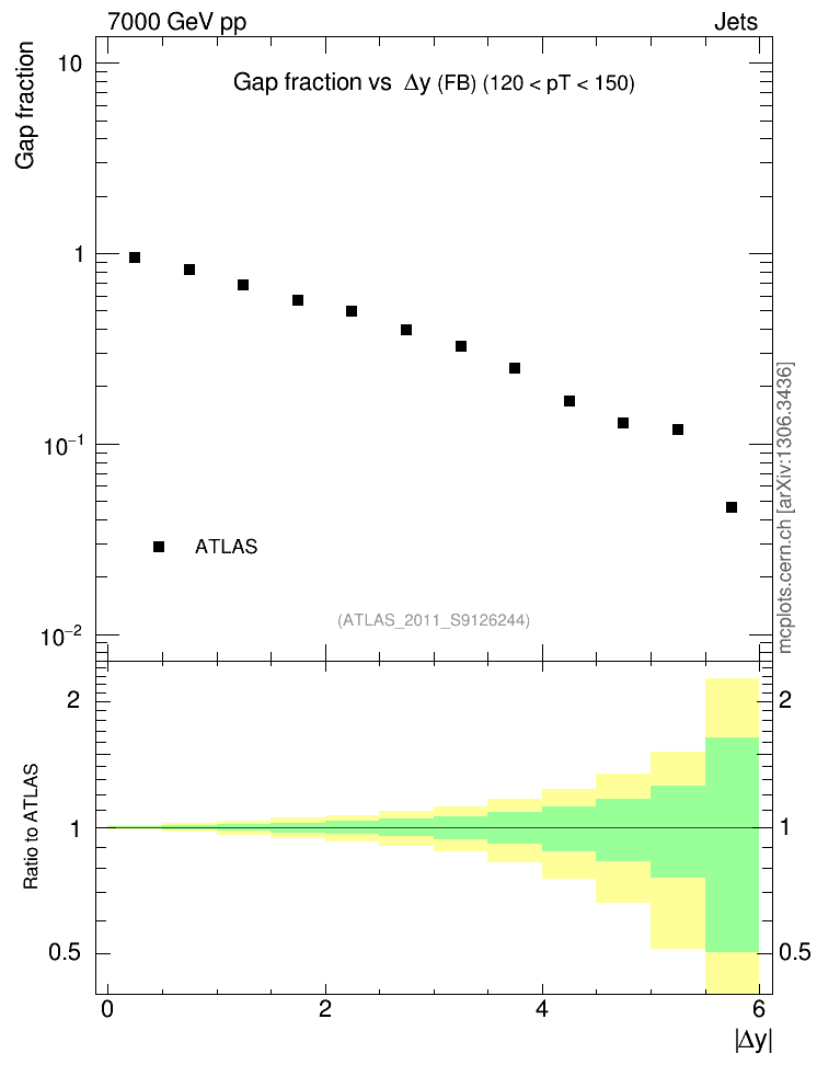Jets : Jets + Veto : Gap fraction vs Δy (FB)