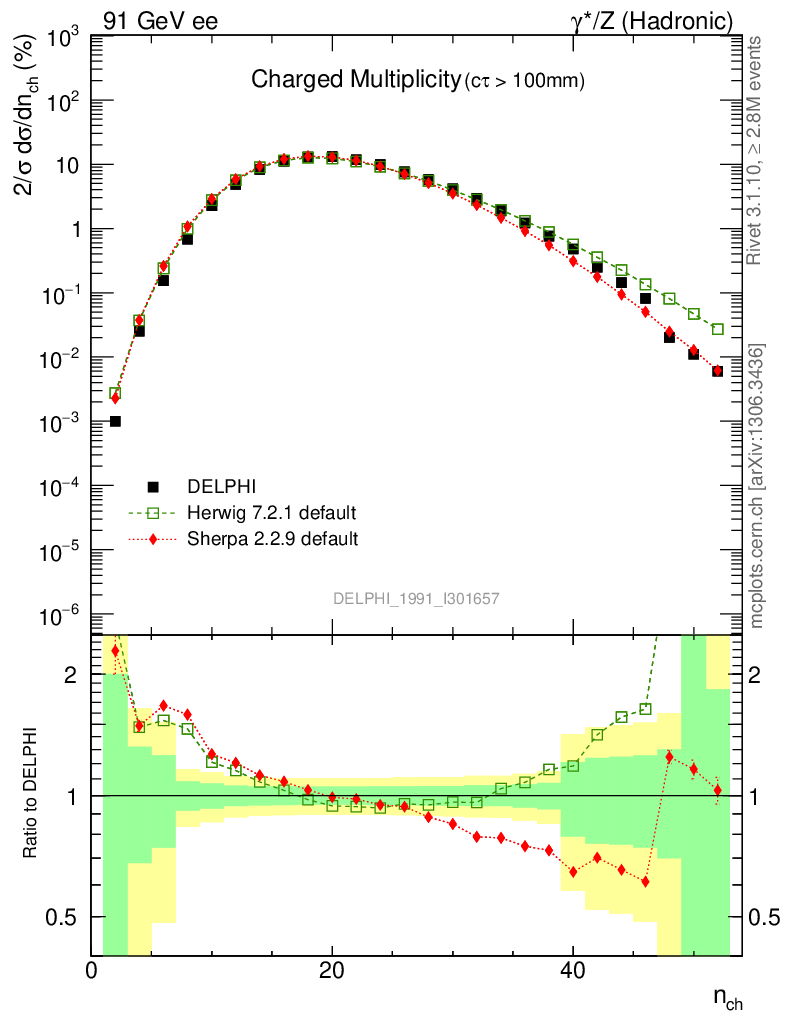ee : γ*/Z (hadronic) : Charged Particles : Multiplicity Distribution