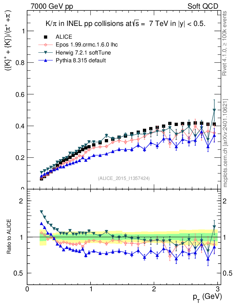 Soft QCD (inelastic) : Identified Particles : Ratios : (K-+K+)/(π-+π+) vs pT