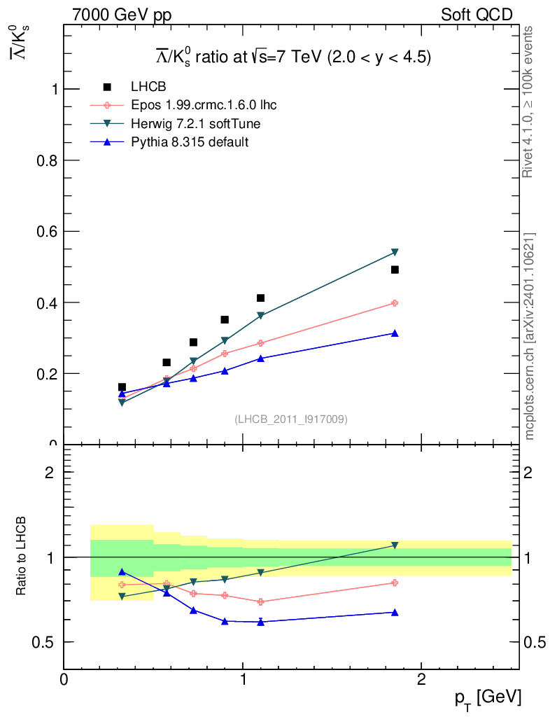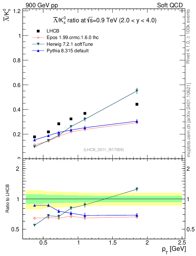 Soft QCD (inelastic) : Identified Particles : Ratios : Λbar/K0S vs pT