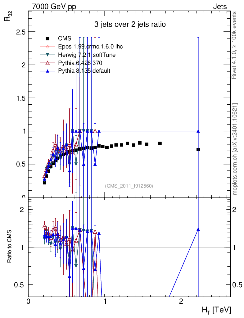 Jets : Jet Multiplicities : R32 vs HT