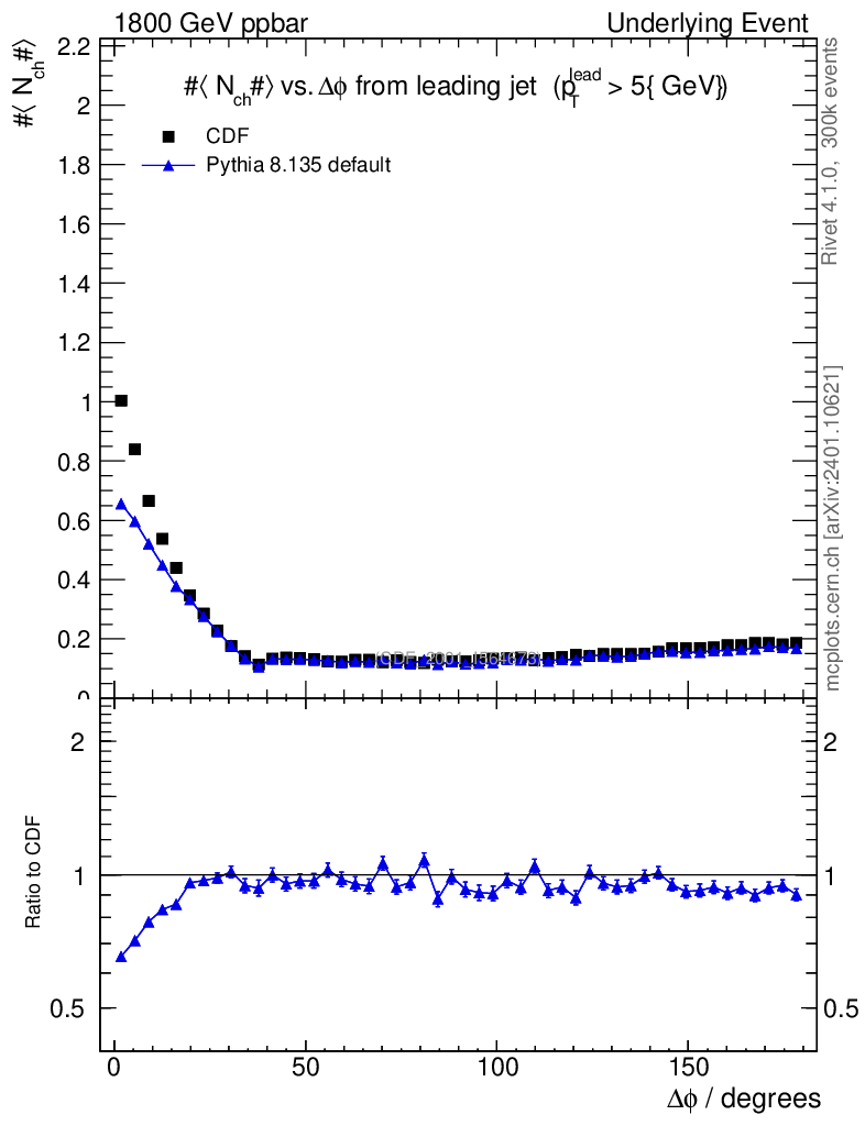 Underlying Event : Δφ distributions : <Nch> vs Δφ