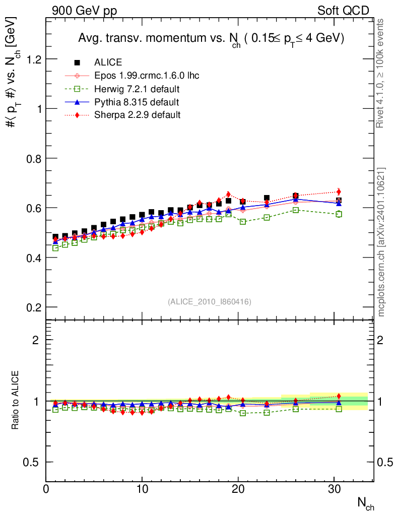 Soft QCD (inelastic) : <pT> vs Nch