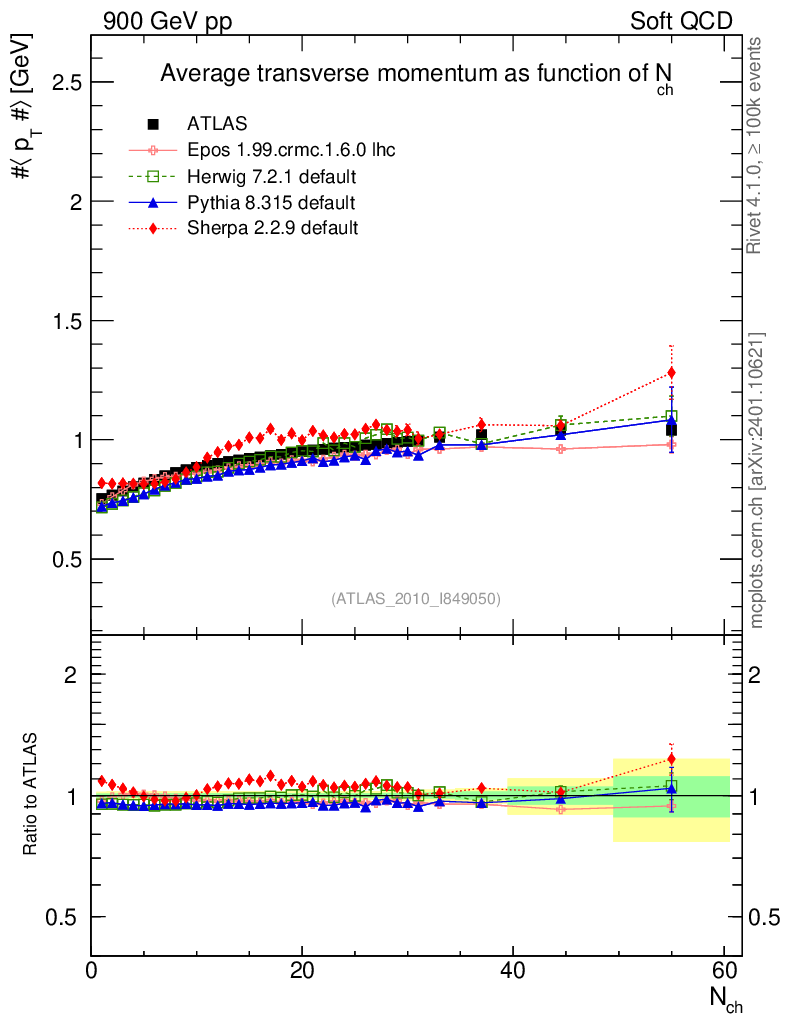 Soft QCD (inelastic) : <pT> vs Nch